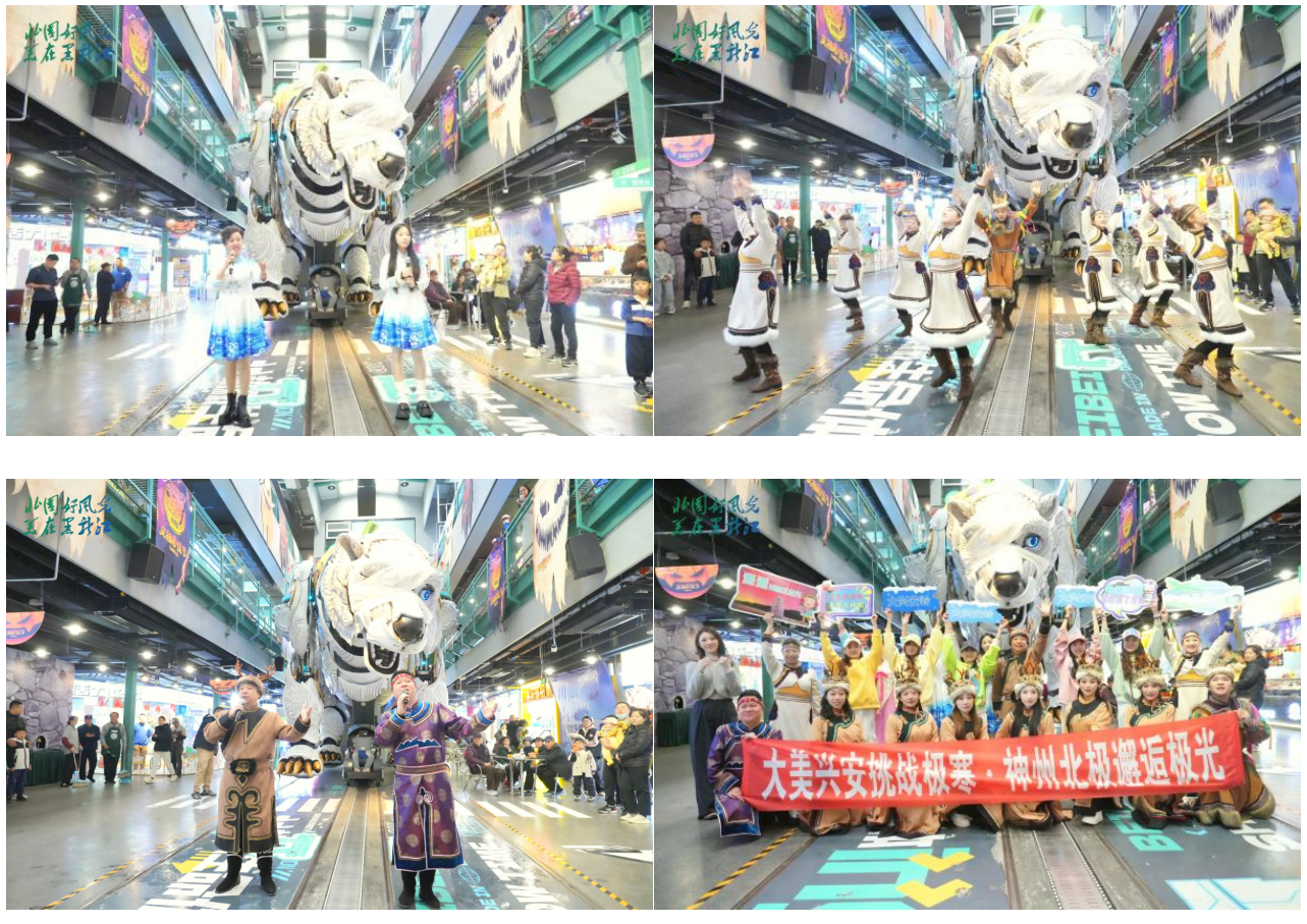 鸡西市带来的音乐快板节奏明快,演员们以朗朗上口的节奏与生动演绎,将鸡西冰雪旅游的精彩娓娓道来,现场气氛持续升温。随后,大兴安岭的演员们身着传统鄂伦春服饰,带来民族舞蹈以及歌曲《高高的兴安岭》,让原生态艺术与时尚街区擦出奇妙火花。