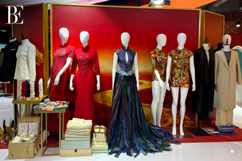 “山系列”展区内,铁岭榛子、盘锦大米、鞍山土蜂蜜搭配柞蚕丝服饰,承载黑土地的丰饶。BE范德安的博物馆级展陈更成“流量焦点”——2016年开创“新中式泳装”风潮的「大鲤鱼旗袍泳装」登场,鲤鱼纹样与旗袍立领交织,诠释匠心与先锋设计的融合,成为辽宁展区“制造+时尚”的亮眼名片。